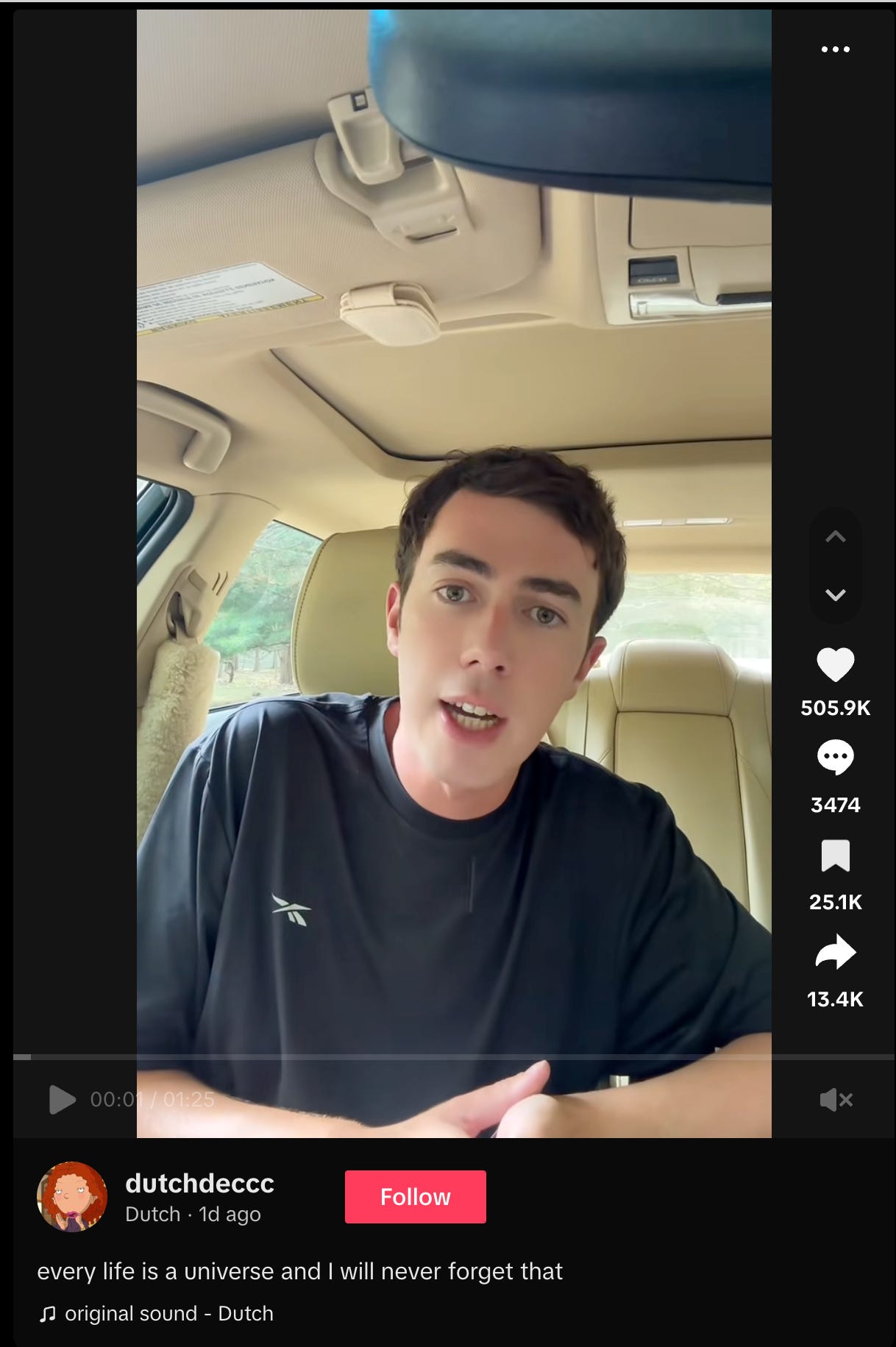 Dutch asked his audience to imagine facing violence trying to get food like the people in Gaza. (1.5 million views)