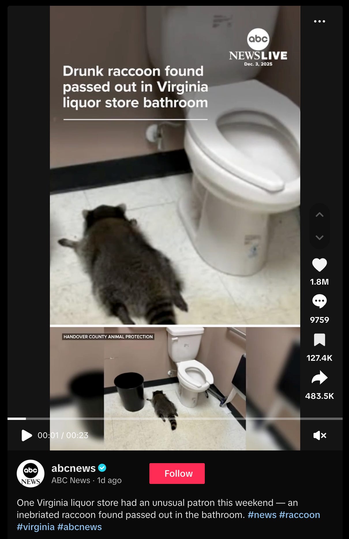 A drunk raccoon found passed out in a Virginia liquor store went viral:
